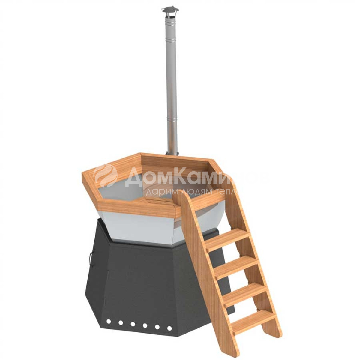 Чан представлен в премиальном исполнении. Произведен из прочной стали и целебной древесины алтайского кедра или лиственицы. Сатинирование поверхности подарило изделию матовое сияние на солнце и надежную защиту от царапин и коррозии.