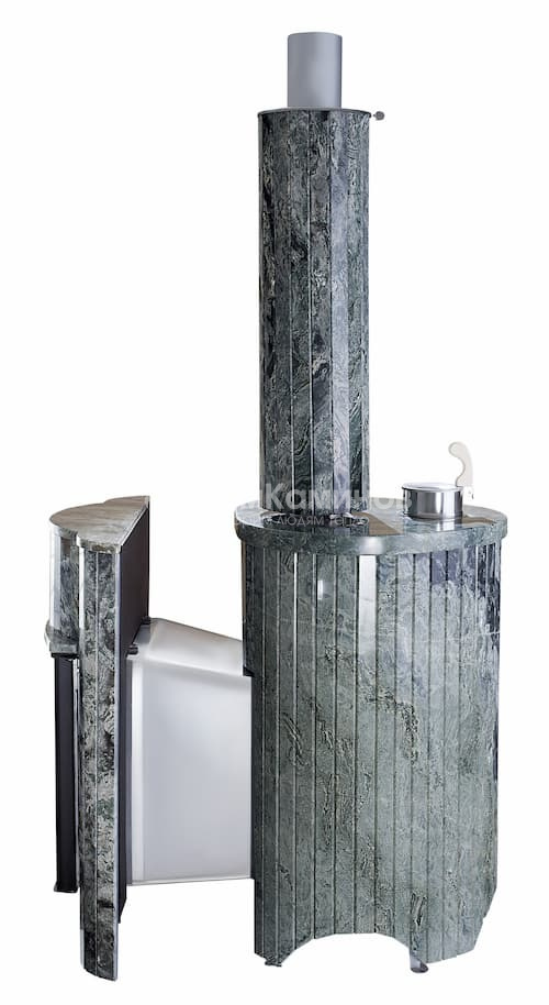 Печь для бани от завода Ферингер, в облицовке Ламель, может быть изготовлена из камня жадеит (змеевик, Rosa Levante) «перенесённый рисунок»