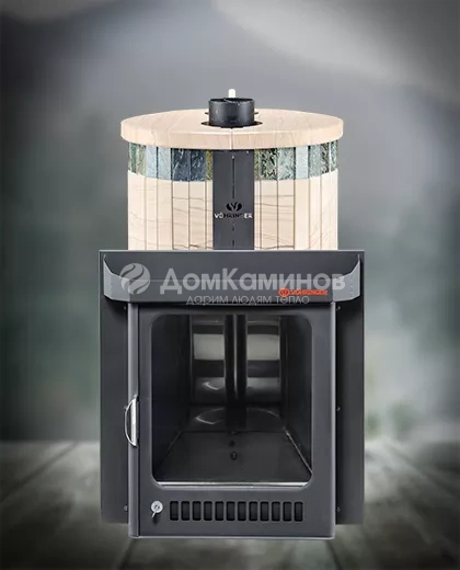 Колосниковая решетка в этой печи для бани на дровах отсутствует. Заложенные дрова разжигают сверху. Не имея над собой препятствий, огонь сразу передает тепло каменке. Пламя постепенно спускается, каждый слой дров прогорает полностью. Система Vortex создает вихревые газовые потоки, не дает пламени подниматься в дымоход. Такие инженерные решения обеспечивают печи высокий КПД, топливо расходуется экономно и эффективно.