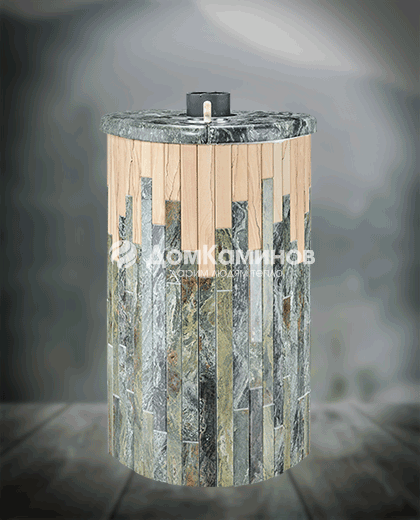 Облицовка печи – ламели из натурального камня, установленные вокруг всего корпуса. Камень блокирует распространение инфракрасного излучения, защищает парильщиков от случайного прикосновения к раскаленному металлу топки. Производство ламелей ведется по собственной запатентованной технологии завода Vöhringer.