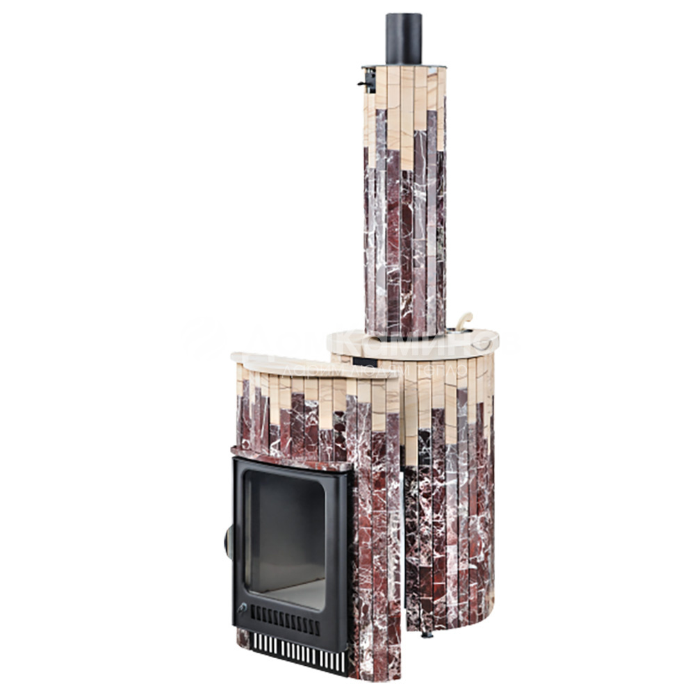 Печь "Малютка" в облицовке Россо Леванте + "Окаменевшее дерево" состоит из 3 упаковок: