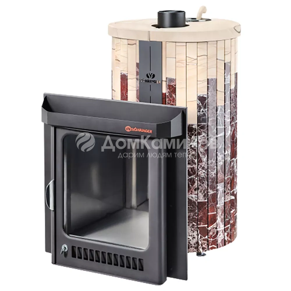 Описание Дровяная печь Ферингер Малютка ПФ в облицовке Россо Леванте+"Окаменевшее дерево", до 18 м³Комплектация: