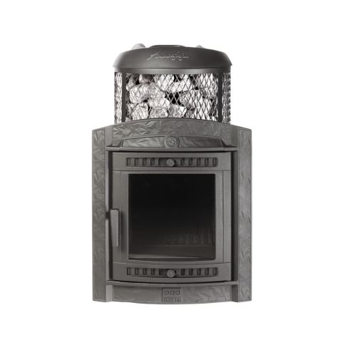 Банная печь Прометалл Атмосфера L комбинированная облицовка Окаменевшее дерево наборные ламели