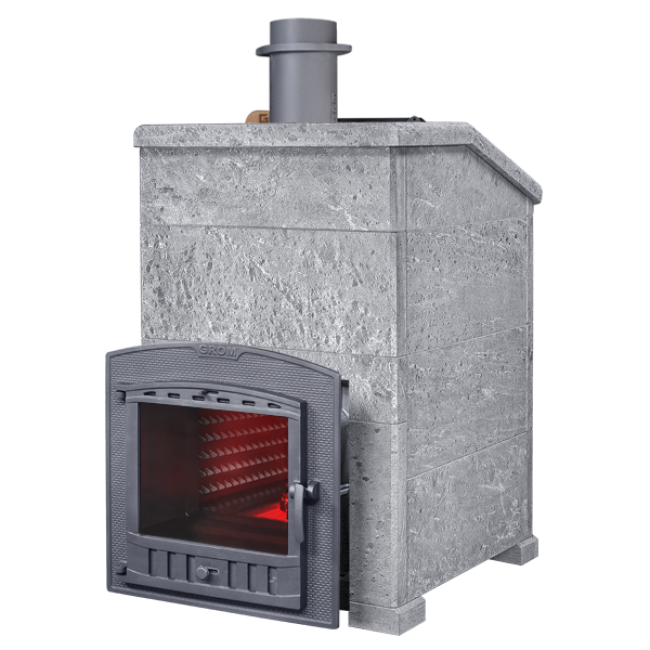Печи линейки Гром имеют в комплекте чугунный короб для установки на каменку и чугунную стартовую трубу длиной 500 мм. Увеличенная масса, толщина боковых стенок 14 мм повышают надежность и теплоаккумулирующую способность, а для быстрого нагрева парной боковые стенки оборудованы конвекционными ребрами не только снаружи, но и на внутренней поверхности.