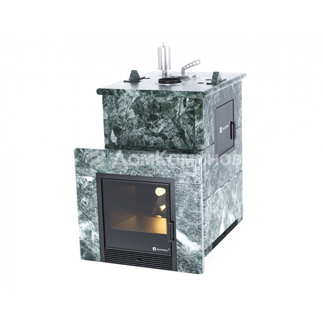 С терморегулирующей задвижкой, позволяющей максимально рационально использовать тепловую энергию и разогревать камни до температур 550-650 °C.