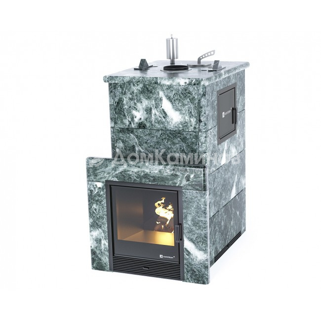 С терморегулирующей задвижкой, позволяющей максимально рационально использовать тепловую энергию и разогревать камни до температур 550-650 °C.
