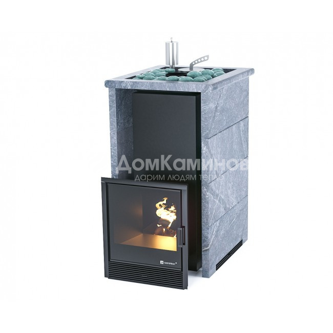 Печь для бани ИзиСтим Сочи в трёхстороннем кожухе из талькохлорита с открытым верхом сталь AISI 430