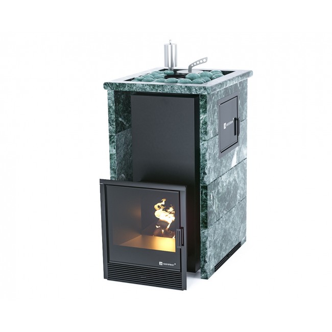Сочи М2 - банная печь предназначенная для использования в семейной бане с объемом парной не более 22 м3. Закрытая каменка и встроенный парогенератор гарантирует большое количество легкого пара, огонь, пылающий за панорамным стеклом подарит атмосферу тепла и уюта в вашей бане, Боковой вход в каменку (М2) позволяет провести более быструю ревизию камней, подавать воду на камни, не используя парогенератор. Кожух из природного камня, создаст приятную атмосферу в парной, излучая мягкое тепло.