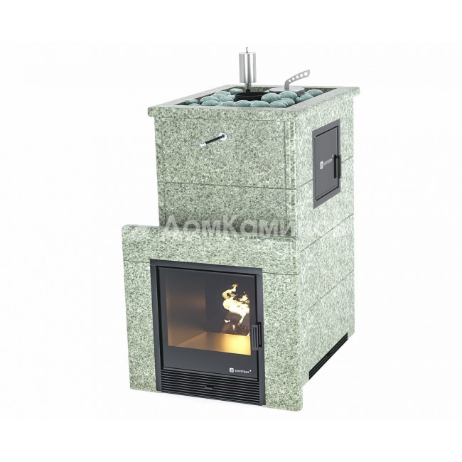 С терморегулирующей задвижкой, позволяющей максимально рационально использовать тепловую энергию и разогревать камни до температур 550-650 °C.