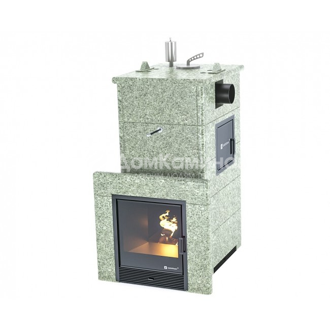С терморегулирующей задвижкой, позволяющей максимально рационально использовать тепловую энергию и разогревать камни до температур 550-650 °C.