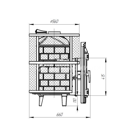 - В печи используется подовое и колосниковое горение, что позволяет нагреть парильное помещение за полтора часа.