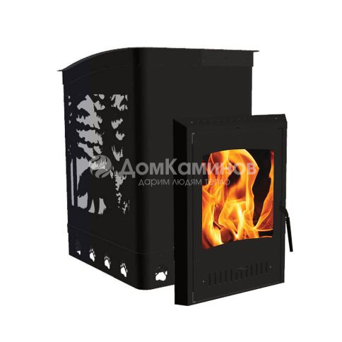 Печь банная чугунная Экокамин Медведь 30 Медведь в лесу, дверка стекло Гранд, открытая каменка