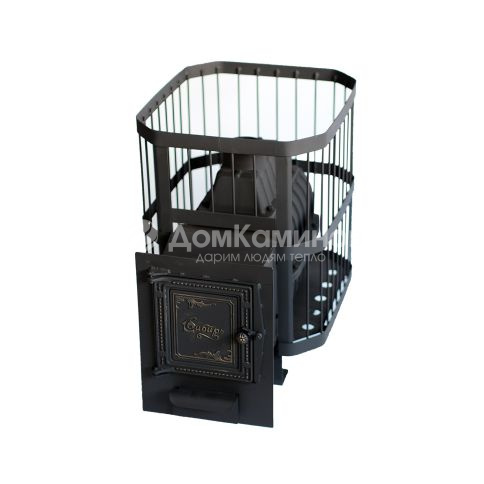 Чугунная банная печь НМК Сибирь-20, универсальная чугунная дверца (сетка)