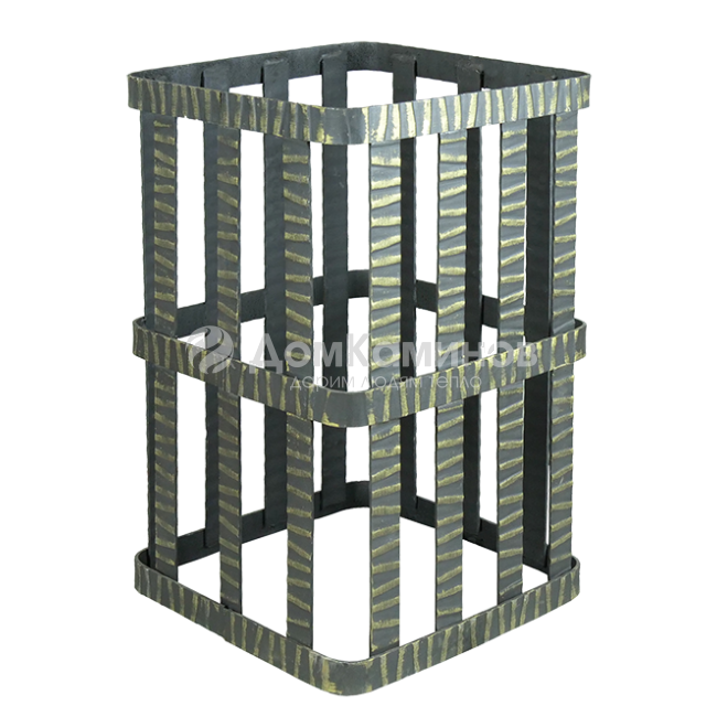 Сетка из стальной кованой полосы толщиной 4мм предназначена для установки вокруг стартовой чугунной или стальной трубы для возможности засыпки камней и экранирования жесткого ИК излучения от нагретого металла. Камни, расположенные в сетке нагреваются и также участвуют в нагреве воздуха в парной.