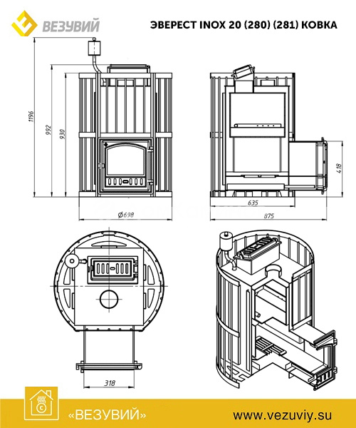 Печь для бани из нерж. стали Эверест INOX 20 (280) Ковка