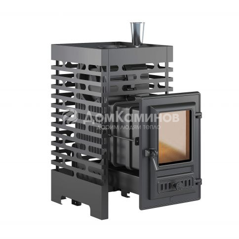 Дверца печи декорирована стеклом. Через стекло можно следить за огнем, прогоранием дров и подкладкой новых. Стекла делаются всего в 2 странах: Германии и Японии. Выдерживает температуру до 750 градусов. Но если ударить кочергой, то может треснуть. Выносной туннель создает пространство между дверкой и топкой печи. Тогда печь может стоять в парной, а дверь находиться в другой комнате. Это дает несколько преимуществ. Закладка дров из предбанника или комнаты отдыха помогает сохранить чистоту в парной. Можете контролировать огонь, не заходя в одежде в жарко натопленное помещение. Или можно сидеть в теплой комнате отдыха и наслаждаться игрой огня после банных процедур.
