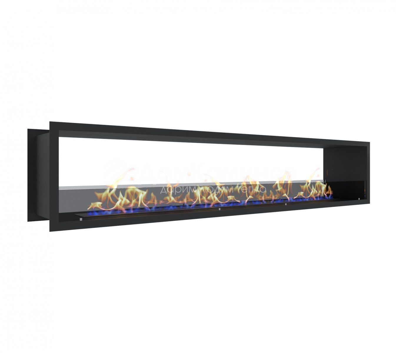 Биокамин изготовлен из термоустойчивой стали толщиной 2 мм и покрашен в черный цвет. Биокамин комплектуется защитным экраном с трех сторон из закаленного стела толщиной 6 мм и топливным блоком из нержавеющей шлифованной стали толщиной 4 мм с возможностью регулировки высоты пламени.