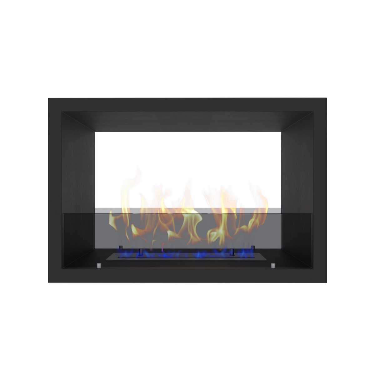 Биокамин изготовлен из термоустойчивой стали толщиной 2 мм и покрашен в черный цвет. Биокамин комплектуется защитным экраном с трех сторон из закаленного стела толщиной 6 мм и топливным блоком из нержавеющей шлифованной стали толщиной 3 мм с возможностью регулировки высоты пламени.