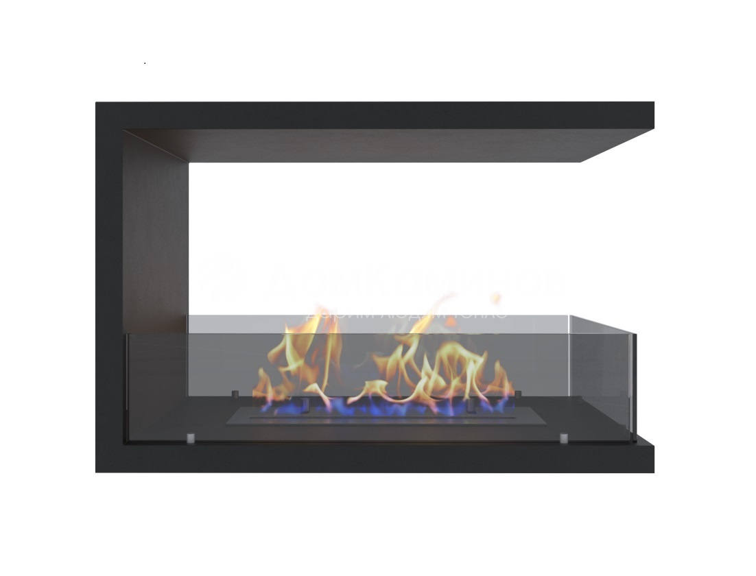 Биокамин изготовлен из термоустойчивой стали толщиной 1,5 мм и покрашен в черный цвет. Биокамин комплектуется защитным экраном с трех сторон из закаленного стела толщиной 6 мм и топливным блоком из нержавеющей шлифованной стали с возможностью регулировки высоты пламени. Толщина нержавеющей стали 4 мм.