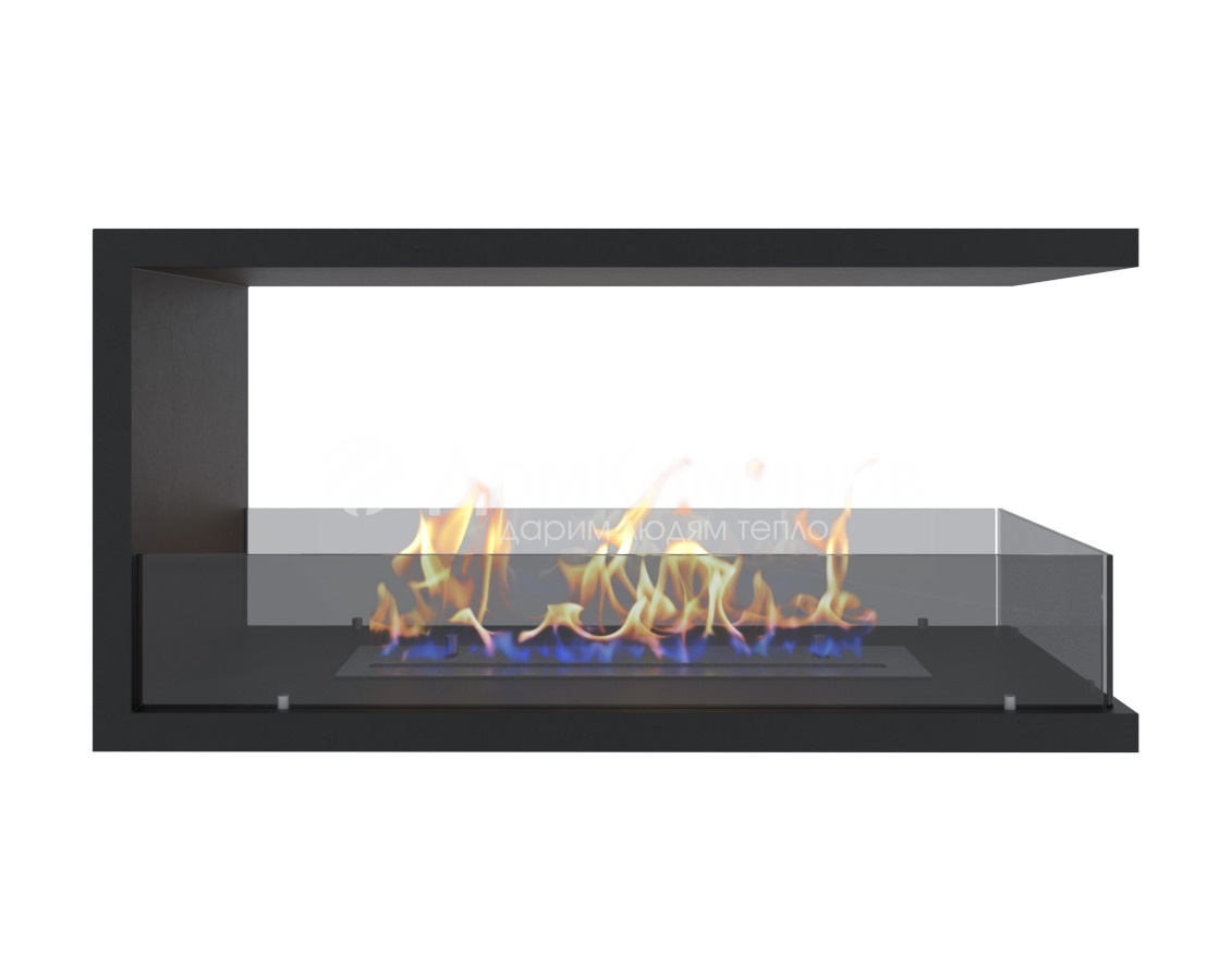 Биокамин изготовлен из термоустойчивой стали толщиной 1,5 мм и покрашен в черный цвет. Биокамин комплектуется защитным экраном с трех сторон из закаленного стела толщиной 6 мм и топливным блоком из нержавеющей шлифованной стали с возможностью регулировки высоты пламени. Толщина нержавеющей стали 4 мм.