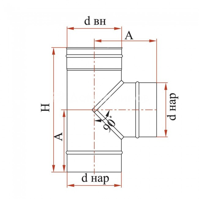 Тройник 90° без изоляции. Изготовлен из нержавеющей стали AISI 439.