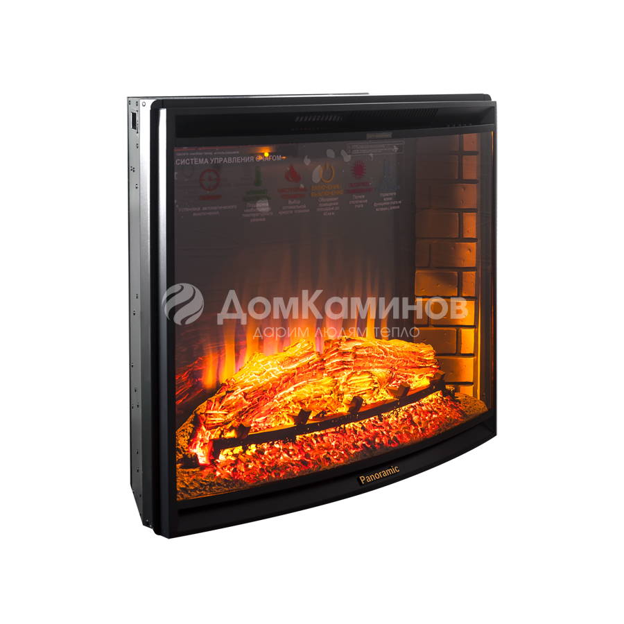 • Электрический очаг с закругленным стеклом создает эффект настоящего камина