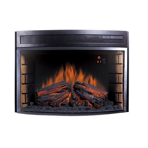 Электрический очаг с закругленным стеклом и звуком создает эффект настоящего камина