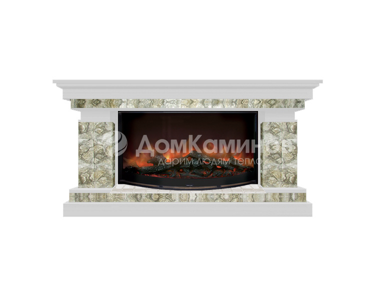 Новый современный дизайн. Отделка электрокамина камушком из серии «Давинчи». Ручное изготовление, ручная роспись. В портал камина встроена электротопка «Premier S86». В комплекте имеется пульт ДУ, мощность обогрева 1000-2000 Вт, в декоративном режиме - 80 Вт. Очень яркий эффект горения дров в очаге камина. Дизайн электрокамина разработан компанией «Гленрич» и предназначен для современных квартир и загородных домов. Портал электрокамина изготовлен из высококачественных и экологически чистых материалов.