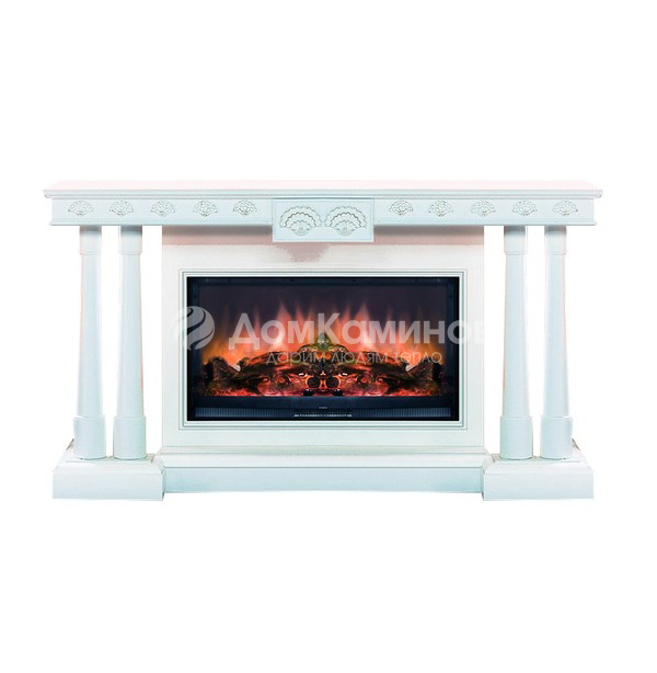 Электрокамин в стиле «кремлевской» классики. Этот прекрасный белоснежный воздушный электрокамин никого не оставит равнодушным. Дизайн электрокамина выполнен в классических традициях. Электрокамин довольно широкий, имеет глубокую каминную полку, что позволит разместить на ней не только плоский плазменный телевизор, но и любимые вещицы, свечи, фото близких и любимых людей. В электрокамин встроена электротопка Premier S86. Электротопка имеет пульт управления, двухступенчатый уровень обогрева 1000 и 2000 Вт. Электрокамин «Рояль» достойно украсит зал, гостиную или спальню, дизайн которых выполнен в нежных классических расцветках. Такой белоснежный электрокамин дополнит своей легкостью и нежностью межкомнатные двери, выкрашенные в белые тона, которые входят в моду в последнее время в современном дизайне помещений. Электрокамин украшен резьбой по периметру каминной полки, резьба находится и на задней панели камина, находящейся за колоннами.