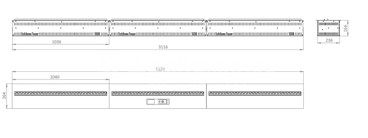 Встраиваемый ШхВхГ: 3116х165х240 мм