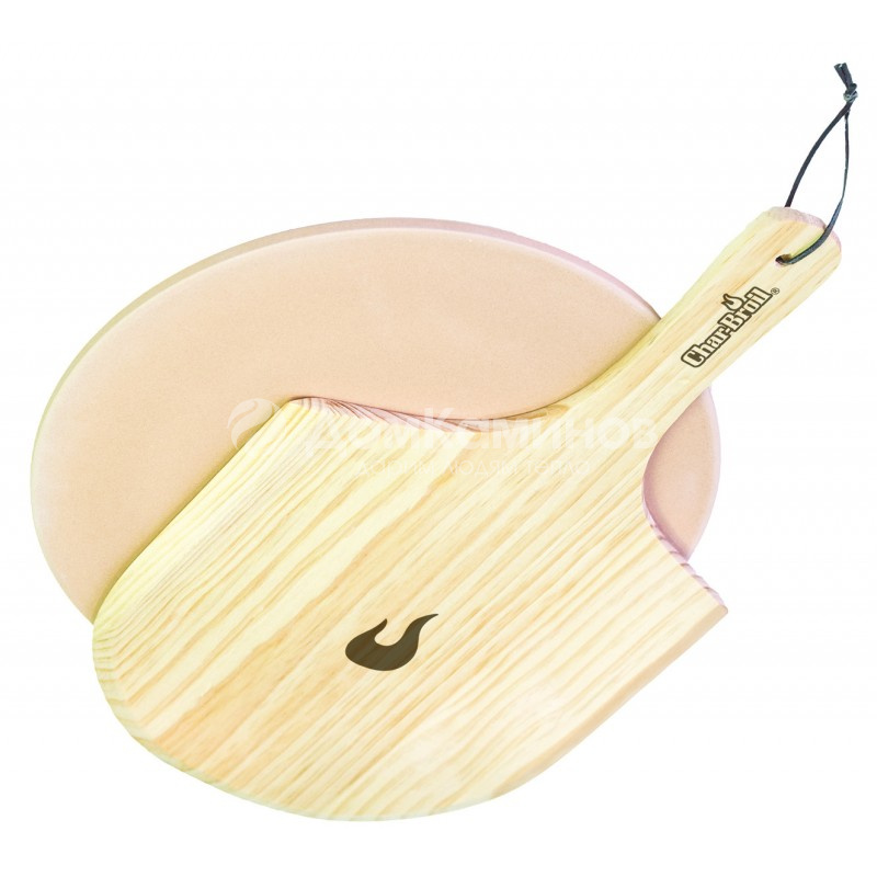 Классический набор для выпекания пиццы, состоящий из камня и деревянной лопатки.