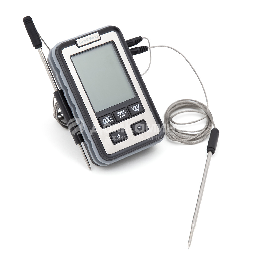 Беспроводной настольный термометр Broil King защищён от воздействия дождя и пыли. Термометр удобно крепится на боковой полке гриля и позволит максимально точно определить температуру продукта. В комплекте идут два щупа.