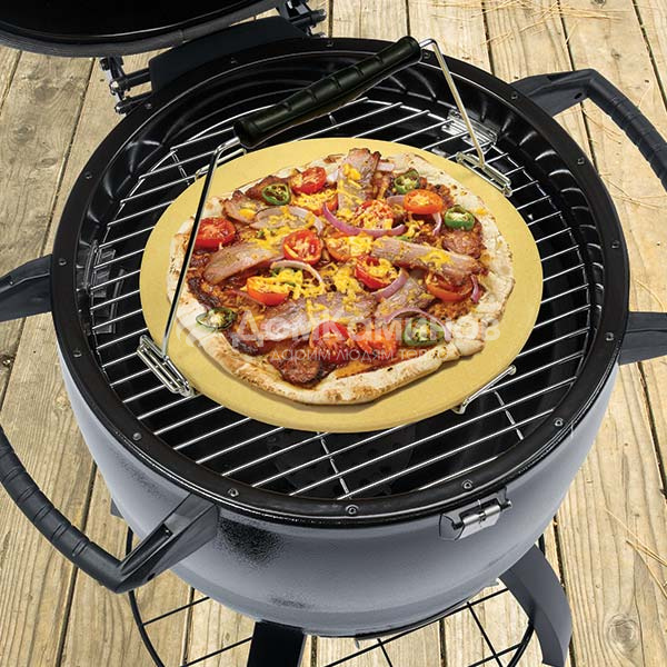 Керамический противень с металлической подставкой, специально для гриля камадо КЕГ от Бройл Кинг. Позволяет готовить в гриле пиццу, тонкие лаваши и мексиканские лепёшки тортилья.