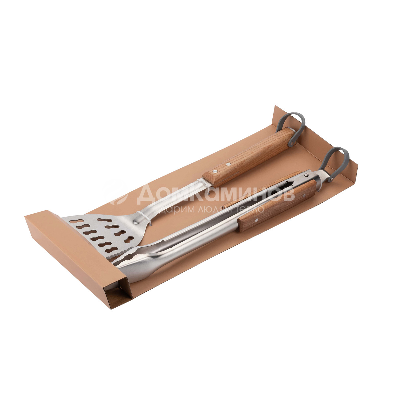 Лопатка и щипцы из высококачественной стали премиального класса с ручками из канадского ясеня.