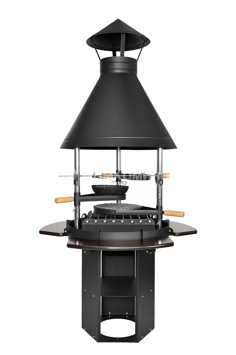 Гриль Fireline BBQ является одним из самых популярных дровяных грилей в России. Внешний вид гриля не оставляет никого равнодушным. Цвета гриля выбраны так, чтобы он не привлекал к себе слишком много внимания, оставляя эту прерогативу Вам. При этом на корпусе не будет видно следов жира, копоти и прочих попутчиков грилинга. Дровяной гриль Fireline BBQ очень надежен и долговечен. Чаша гриля и его купол выполнены из 3 миллиметровой стали, с дополнительными кольцами прочности. В совокупности эти два фактора ни при каких обстоятельствах не позволят грилю потерять форму. В нижней части гриля располагается отсек для хранения принадлежностей, а также зольник. Верхняя часть укомплектована металлическим зонтиком против дождя и прочих осадков. Гриль Lappigrill BBQ оснащен двумя независимыми, оснащенными лифтовым механизмом, платформами. Они с легкостью регулируются по высоте, что позволяет контролировать процесс жарки и готовки. На одной из них находится контактный гриль для жарки стейков. На втором чугунная сковорода, вместо которой можно установить казан. В базовой комплектации барбекю гриль Fireline BBQ оснащен: шашлычным модулем с 8 прочными шампурами из нержавеющей стали с деревянными ручками; набором для томления рыбы, состоящим из двух дощечек, выполненных из липы и ольхи, с зажимами из нержавеющей стали; чугунной сковородой, контактным грилем со съемной ручкой для жарки стейков; вертелом из нержавеющей стали; барбекю решеткой из нержавеющей стали, диаметром 72 см.; кочергой; колосником. Так же в качестве дополнительного аксессуара гриль может быть оснащен всепогодным чехлом и дополнительными трубами, с проходным элементом через крышу.