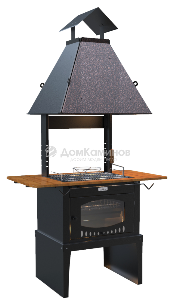 Гриль отлично подходит для загородного, семейного отдыха и способен обеспечить вкусным питанием довольно большую компанию. Прочный корпус изготовлен из высококачественных сплавов металла что обеспечивает агрегату надежность и долговечность. С боков гриль оснащен удобными, деревянными полками на которые удобно положить продукты или посуду. В нижней части гридя находится отсек для хранения дров, высоту которого можно регулировать специальной ручкой. Жаровня гриля оснащена шашлычным модулем и модулем для приготовления пищи на ольховых или других щепках. Уважаемые покупатели, если у вас возникли какие либо вопросы по приобретению гриля вы всегда можете обратиться за консультацией к нашим менеджерам, по указанным на сайте телефонам.