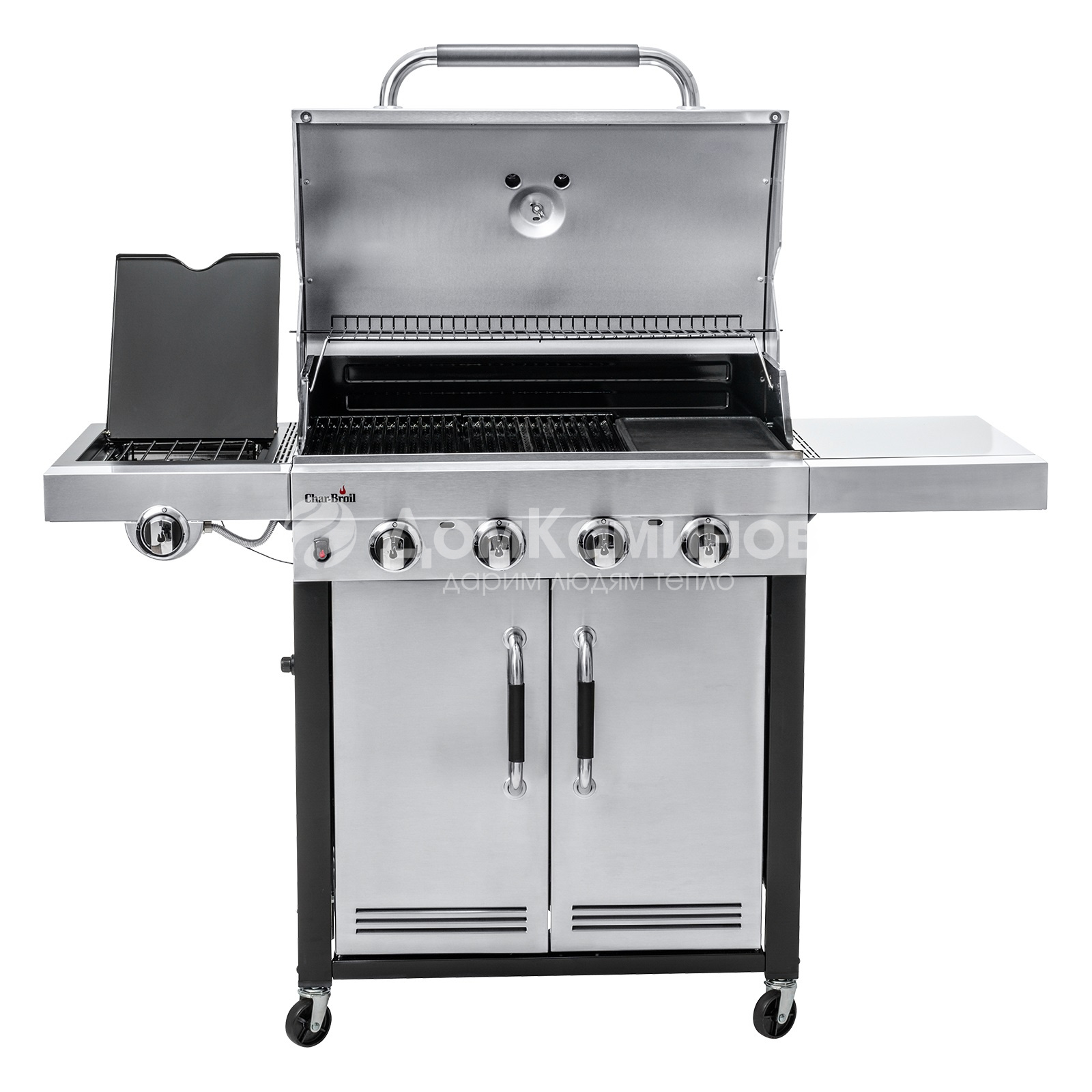Char-Broil серии Advantage™ - доступные газовые грили с инфракрасной решеткой TRU Infrared™, которая обеспечивает равномерный жар по всей решетке и предохраняет от вспышек капающего жира в котле. Эта просторная модель с четырьмя основными и дополнительной боковой горелками прекрасно подойдет даже для самой большой компании.