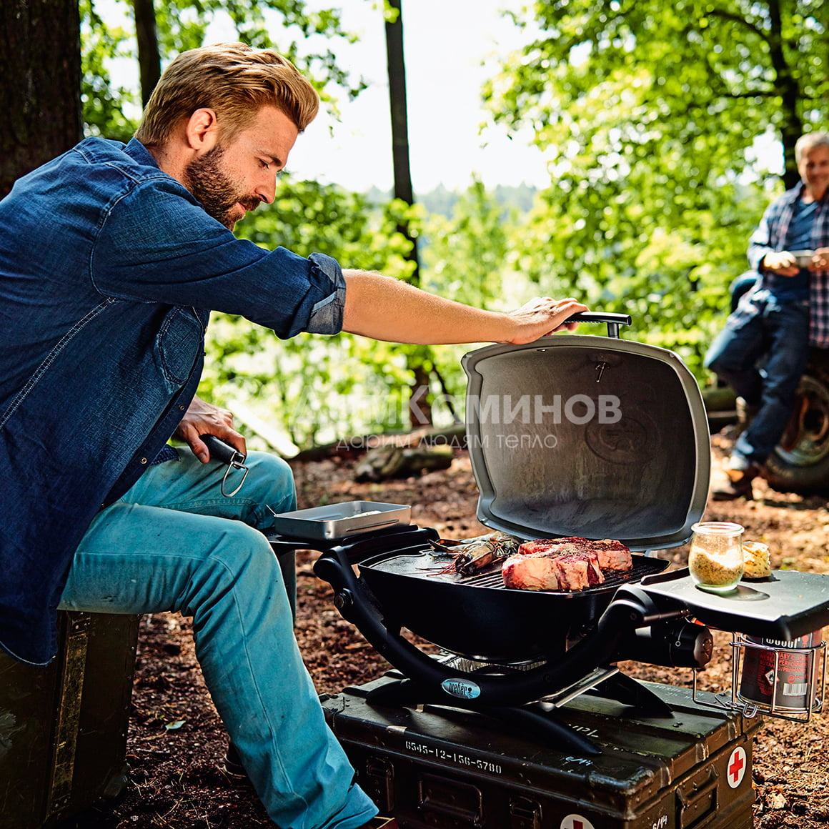 Являются отличительными характеристиками газового гриля Weber Q 1200 Black Line. Его небольшой вес позволяет его использовать как портативное кухонное устройство. Можно дополнительно приобрести специальную подставку-тележку, но данный газовый гриль-барбекю и без нее прекрасно чувствует себя на любой поверхности.