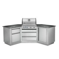 Конфигурация летней кухни Napoleon Oasis - 200 предполагает ее размещение как вдоль стены, так и в виде отдельностоящего «островка», который с легкостью может стать центром всей композиции открытой обеденной зоны. Для данной модели кухни технически подходит один из двух моделей грилей Napoleon: BILEX485 (на 4 горелки) или BILEX605 (на 5 горелок). В комплектации кухни присутствует широкая тумба-основание под гриль, тумба для газового баллона и тумба на 2 ящика. Дополнительно, в качестве конструктивных и завершающих образ элементов, в комплекте прилагаются по 2 штуки декоративной завершающей панели и соединительной панели. Именно они отвечают за безупречность внешнего вида, гармоничность и целостность образа летней кухни.