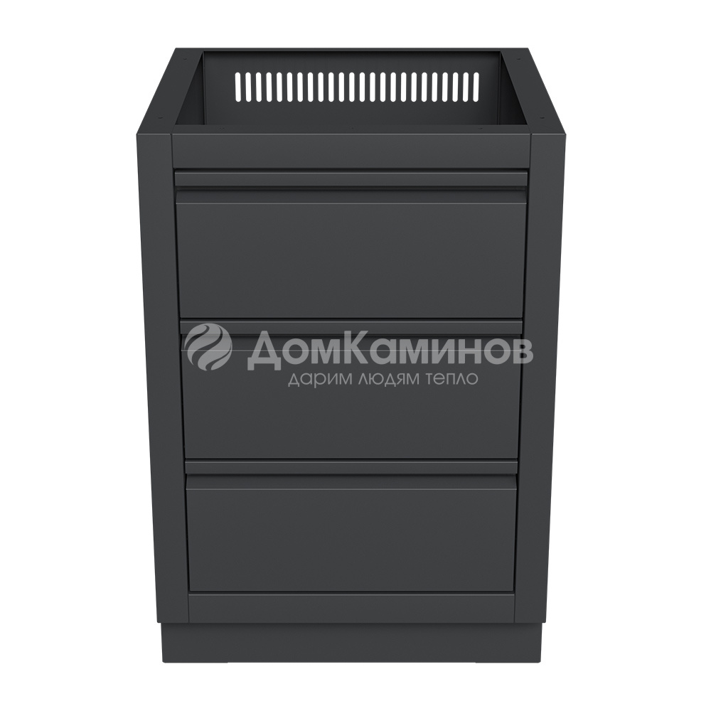 Тумба изготовлена из высококачественной пищевой нержавеющей стали AISI304, окрашенной в матовый черный цвет RAL9004 с текстурой муар.