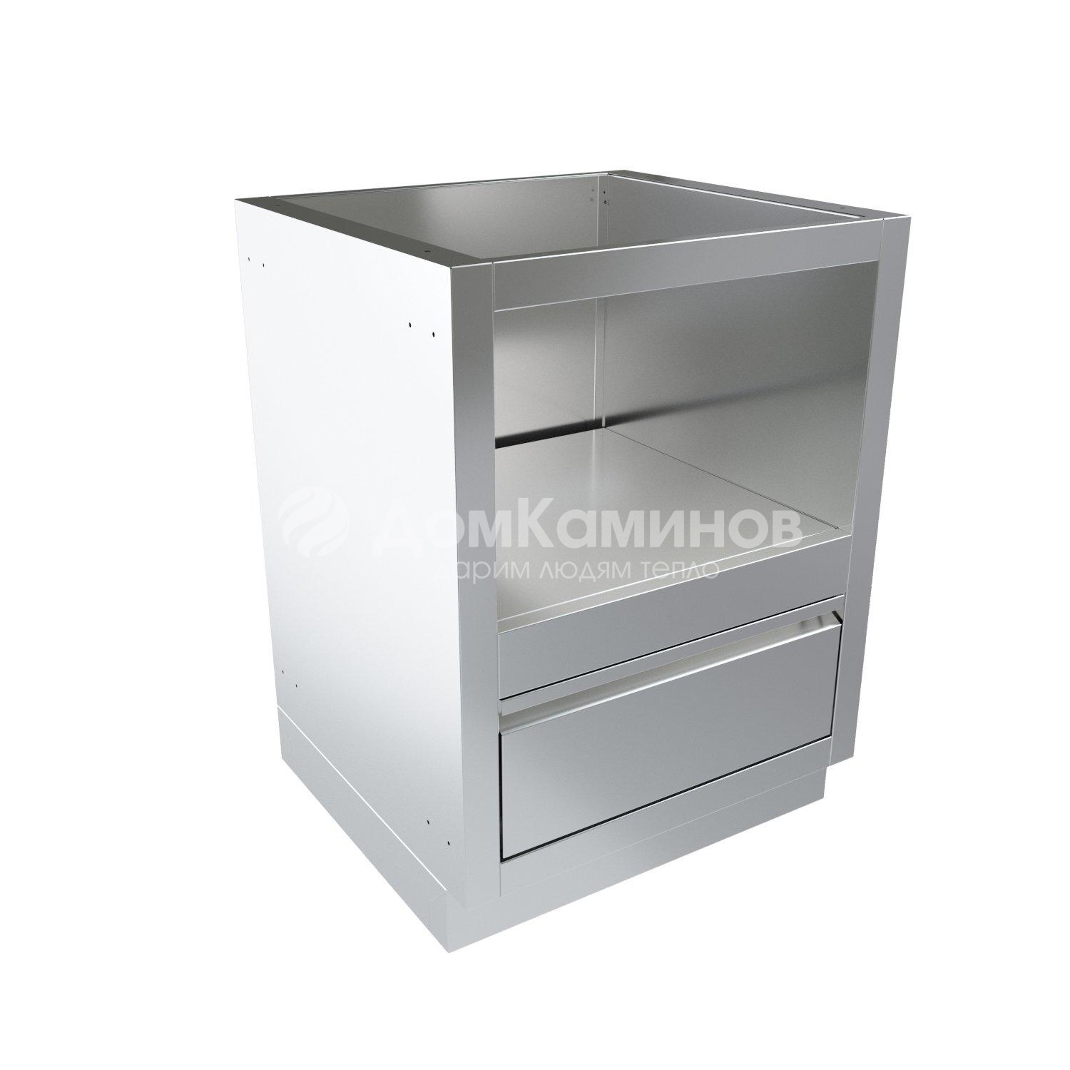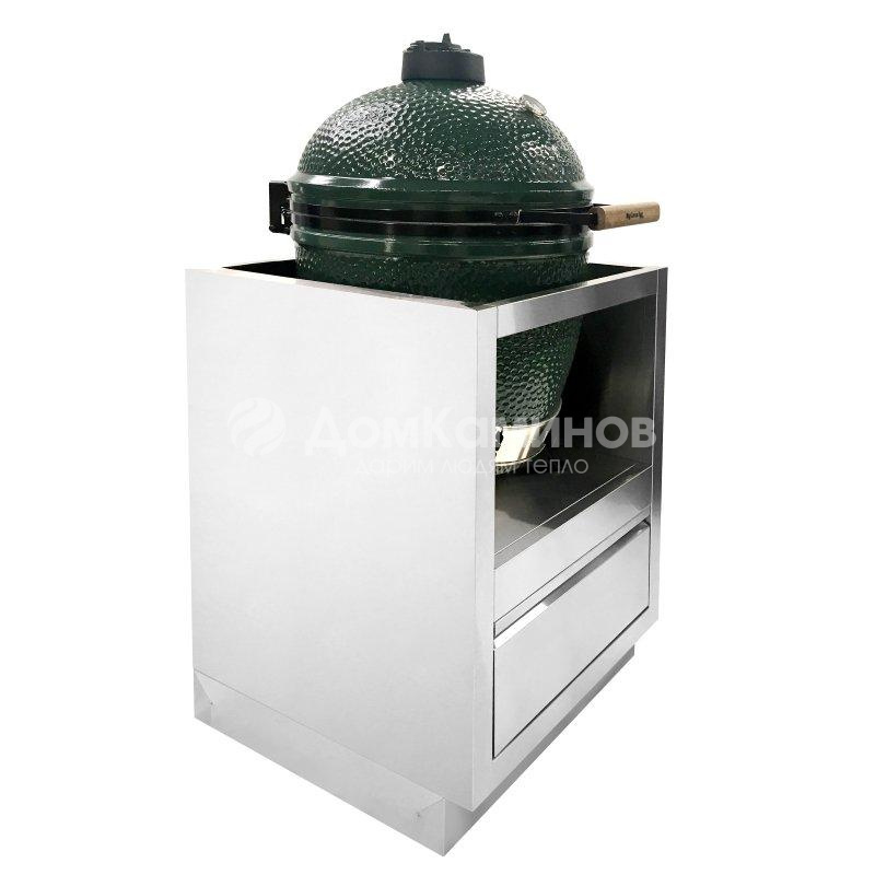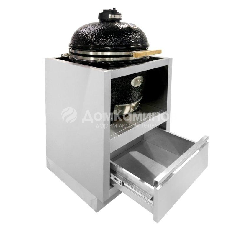 Тумба изготовлена из высококачественной пищевой нержавеющей стали AISI304. Предназначена для установки круглых керамических угольных грилей. Оснащена нижним выдвижным ящиком с доводчиком для хранения аксессуаров.
