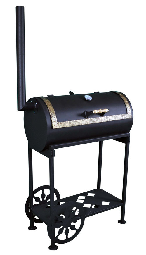 Благодаря оригинальному дизайну такая коптильня не только создаст все условия для кулинарного творчества владельцев, но станет изюминкой пикника, добавив антуражу особый шарм.