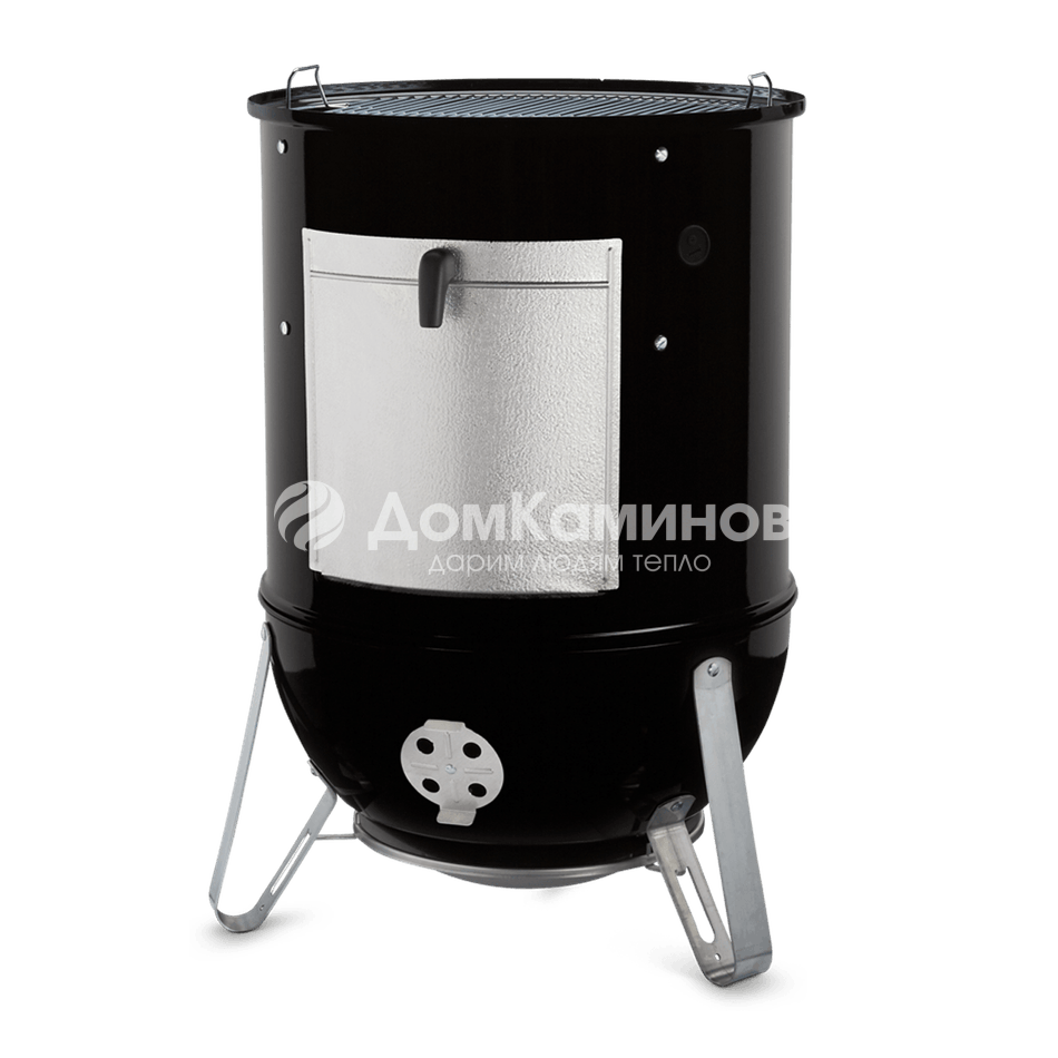 В нижней части корпуса – в отсеке для укладки угля – предусмотрена вентиляционная заслонка, позволяющая регулировать приток воздуха для установки нужной температуры копчения. А встроенный в крышку термометр позволит наблюдать за ее (температуры) изменением.