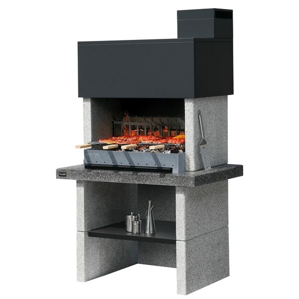 Барбекю, выполненное из высокотехнологичного и жаропрочного материала, покрытого мраморной крошкой, черной лакированной стали, с использованием полировки Crystal.