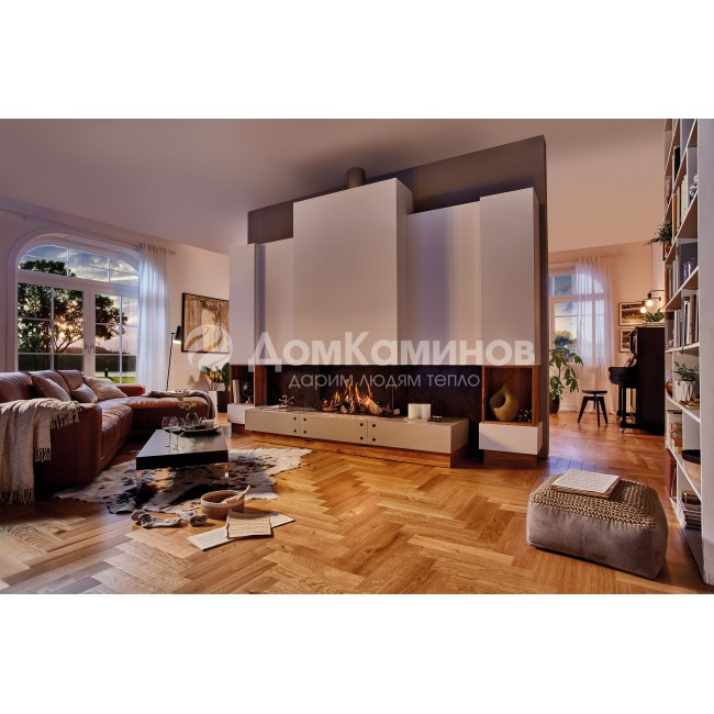 Горелки, вмонтированные в поленья, объединены в две дистанционно управляемые группы. Таким образом пламя и температура регулируются по желанию, изменяется и картина пламени. Горелки, расположенные на втором плане, придают очагу глубину.