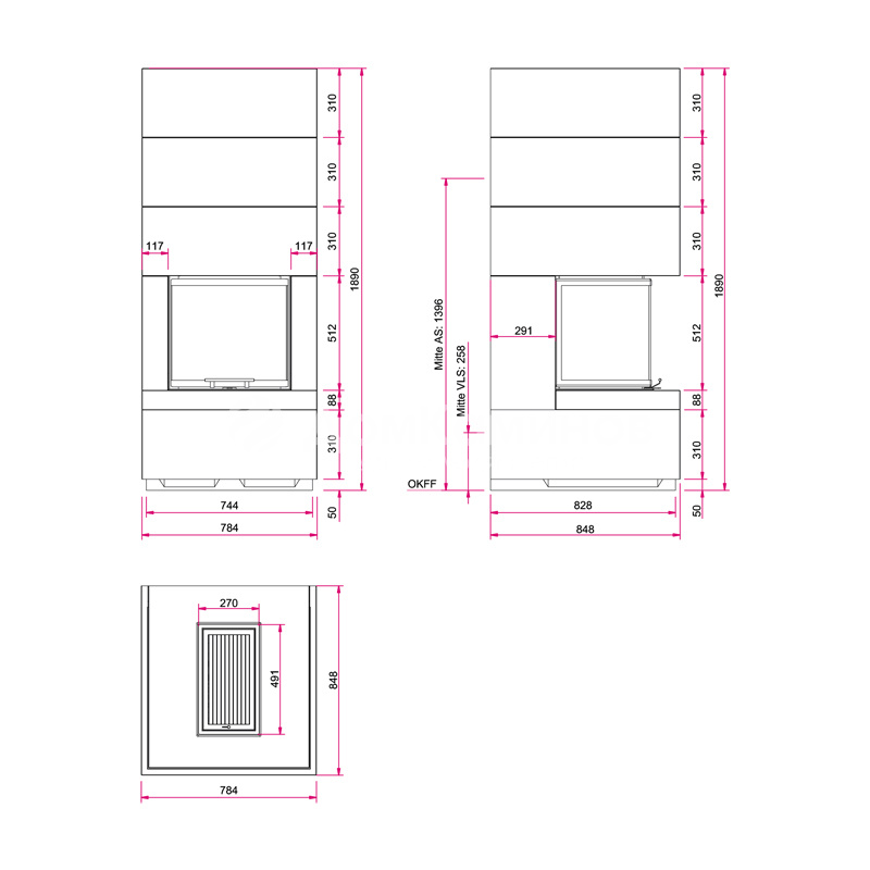 3-х сторонняя каминная топка Ekko U 55(45)51h