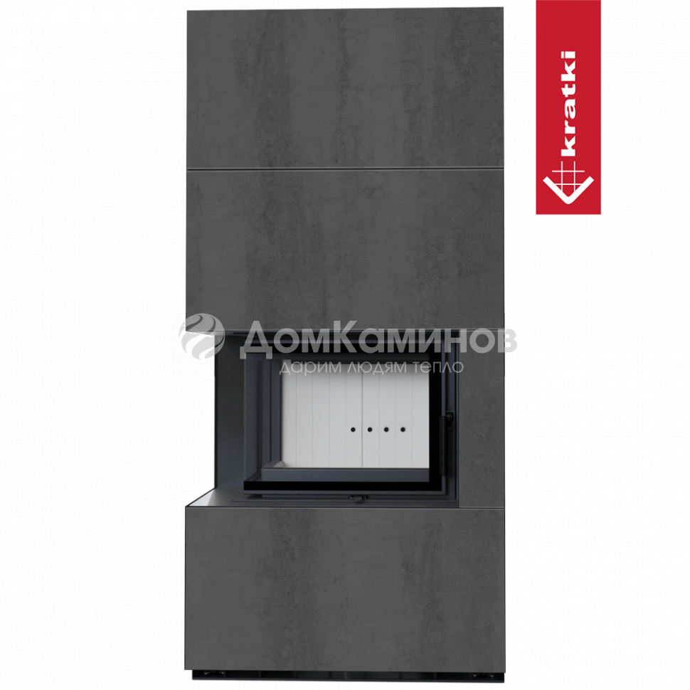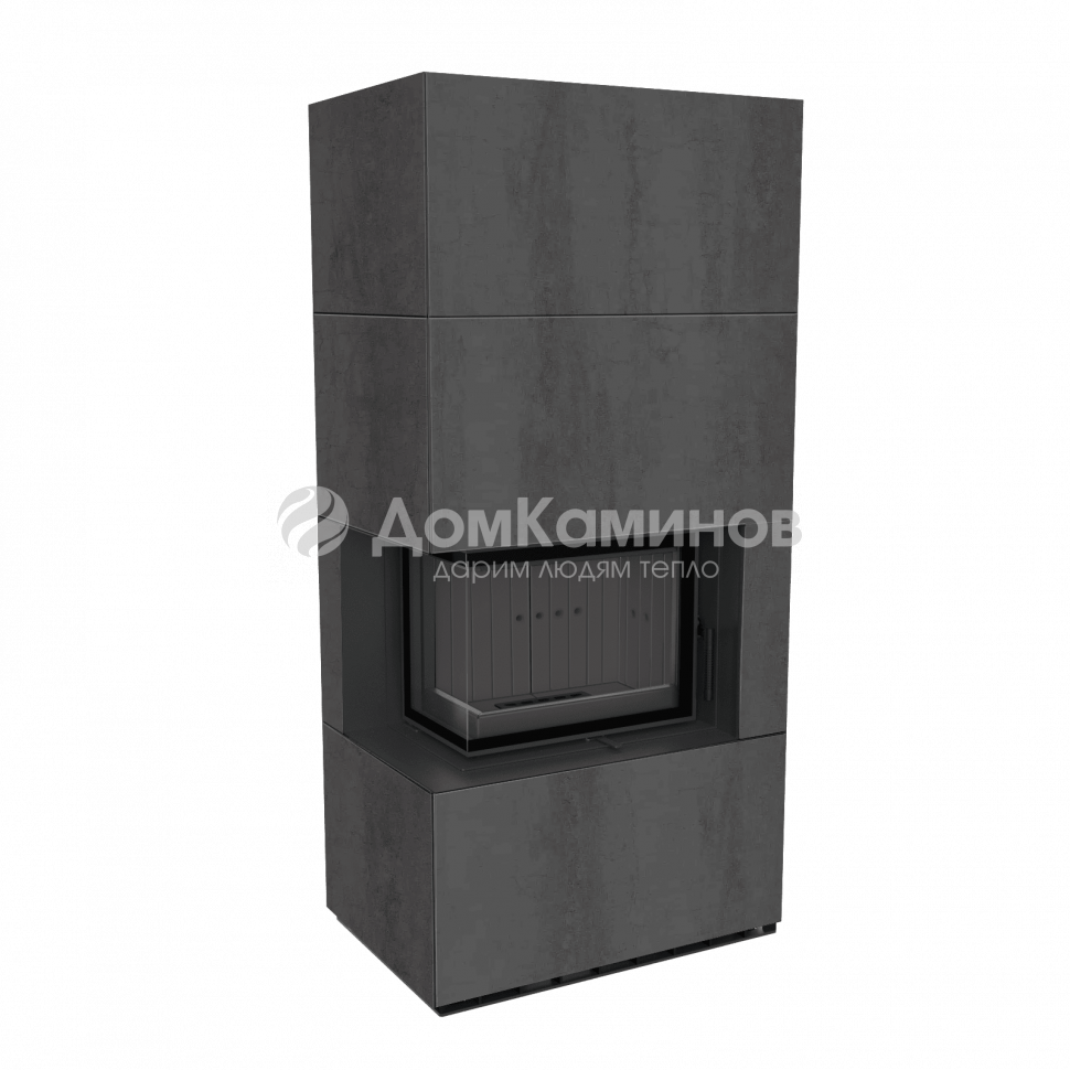 Каминокомплект FLOKI в облицовке NATURALI PIETRA DI SAVOIA ANTRANCITE BOCCIARDATA, угловое стекло слева в Тюмени