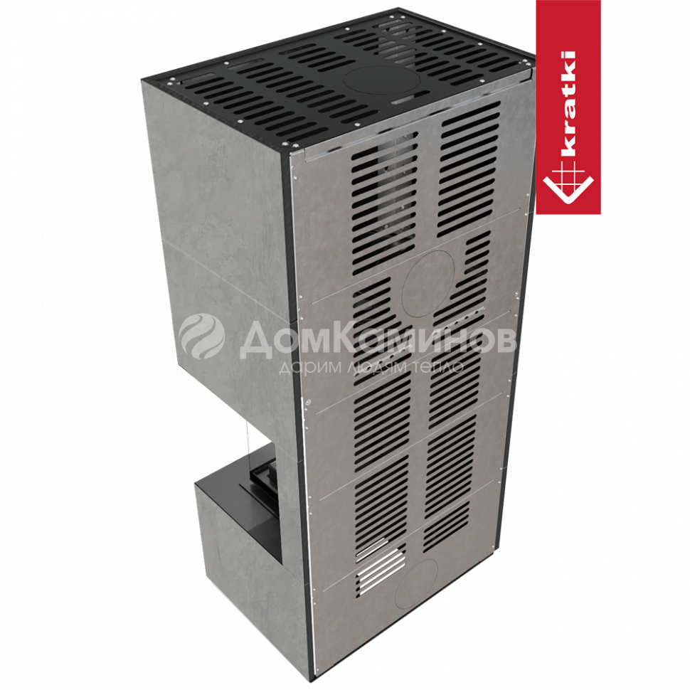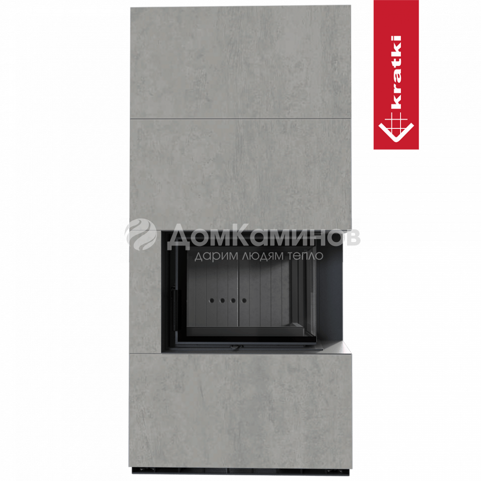 Каминокомплект FLOKI в облицовке CEMENTO GRIGIO BOCCIARDATA, угловое стекло справа в Тюмени