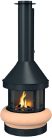 Traforart Zeus Frontal, со стеклом (Трафорарт Zeus пристенный, со стеклом) — камин выполненный из стали. Мощность очага — 14.4 кВт, достаточно для помещения в 360 м3. КПД — 73%. Устройство предназначено для размещения у стеных, 3 закруленных стекла образуют панорамный обзор, наслаждаться огнём с любого угла помещения. Модель с напольным типом размещения.