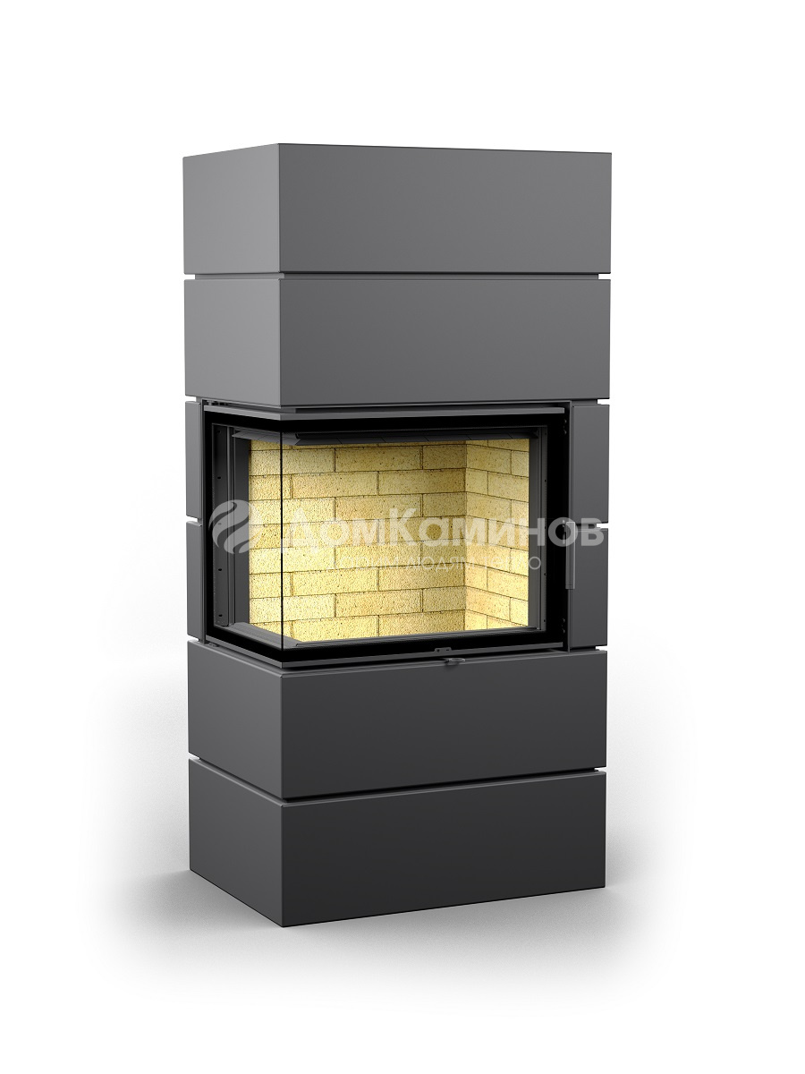 За счет отсутствия между стеклами стойки рамки из метала, Г-образное стекло в топке смотрится единым целым. Номинальная теплопроизводительность устройства 7 кВт. Оптимальный объём зала 150 м3. Вы будете чувствовать себя комфортно, даже если очаг горит круглосуточно.